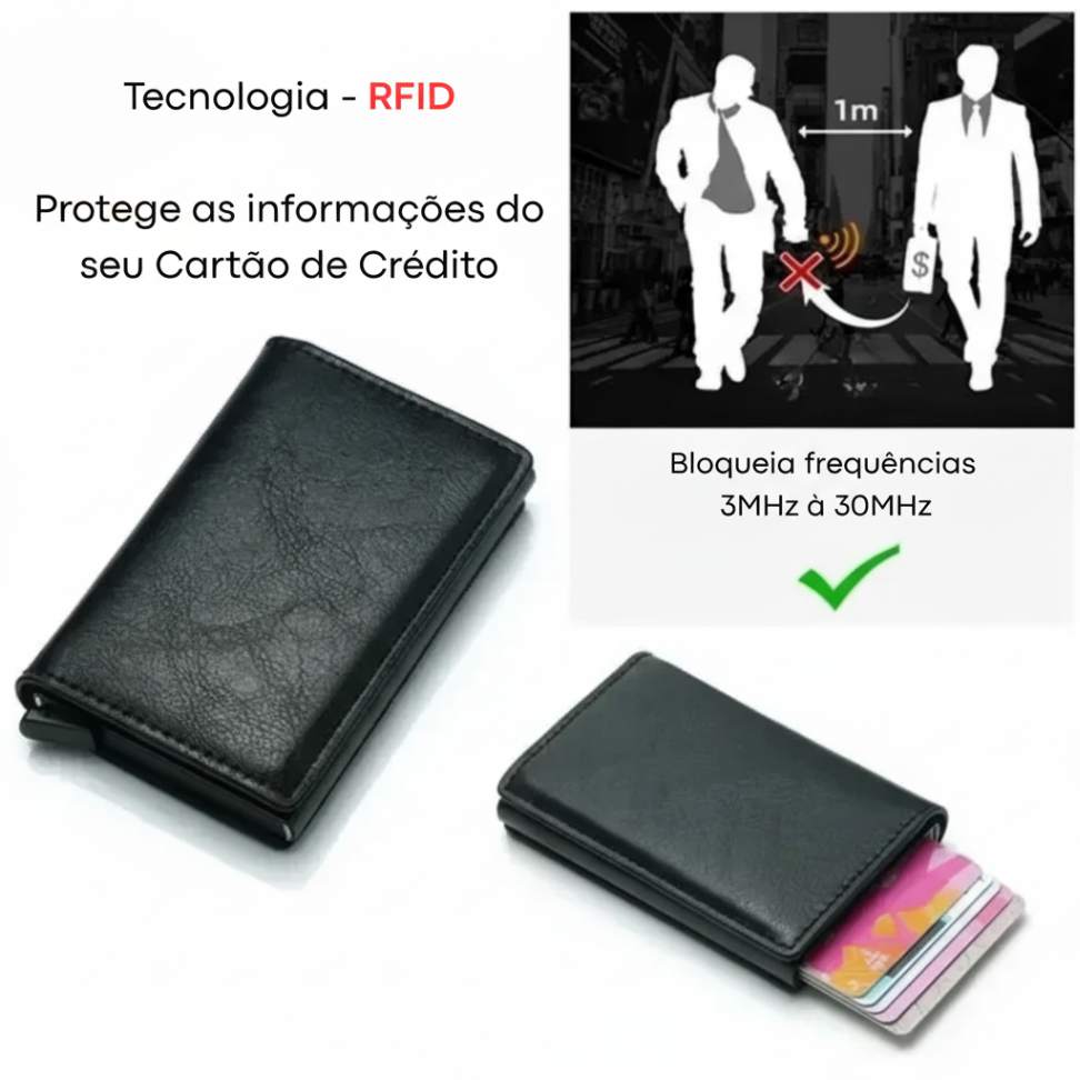 Não seja a próxima vítima da tecnologia ou do desconforto. Eleve o padrão dos seus acessórios e proteja o que é seu com a Carteira Anti-Furto Carbono. Mais do que uma carteira, é a sua nova aliada na selva urbana.